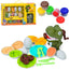 - The set contains multiple colors of dough, dinosaur egg molds, and other tools.